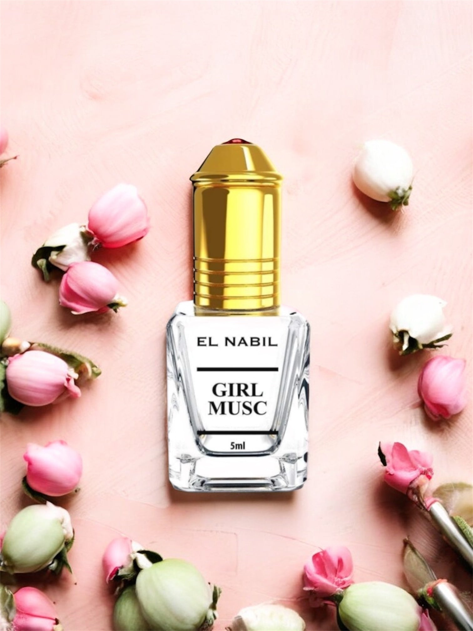 Girl Musc d’El Nabil est un extrait de parfum doux et frais, où la pêche, le jasmin et la rose s’ouvrent sur un cœur floral aquatique, reposant sur un fond tendre de musc et de vanille. Une fragrance légère et délicate, parfaite au quotidien